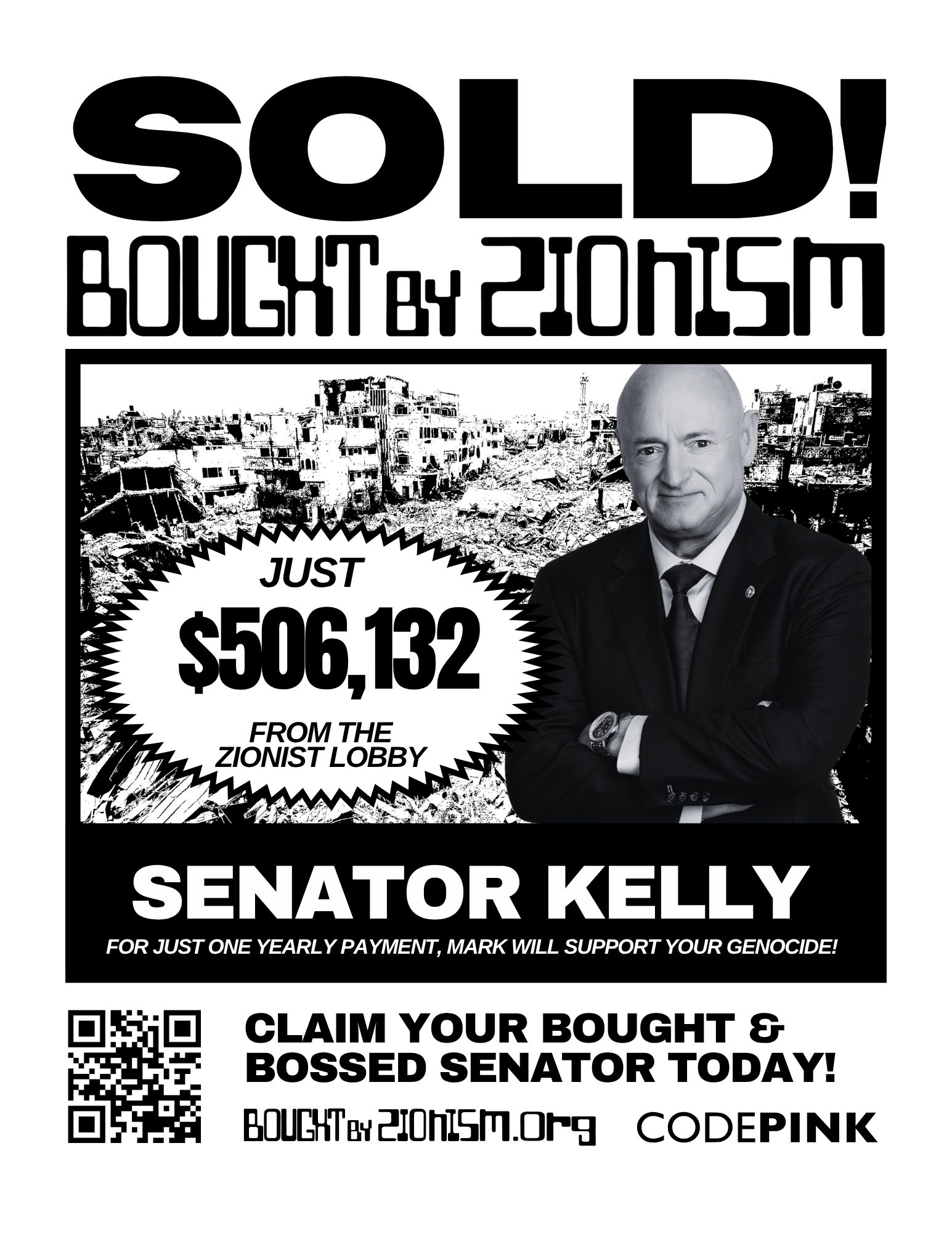 Kelly visited the genocidal state of Israel two times since October 7, affirming his support for the state of Israel on X. After his second visit, Kelly acknowledged the pain of families of Israeli hostages he met with while mentioning little of the tens of thousands of Palestinians that had been brutally murdered by Israel. Unsurprisingly, Senator Mark Kelly voted in favor of the $95 billion supplementary funding package, which included $26 billion to Israel to continue to bomb Palestinians in Gaza. In his statement advocating for the bill, he stated, “Let’s get this done right now and show the world that the United States continues to lead, continues to stand by our allies, and continues to be the strongest force for peace and stability in the world.” Clearly, according to Sen. Kelly, “peace and stability” entails being paid off nearly half a million dollars to support genocide.