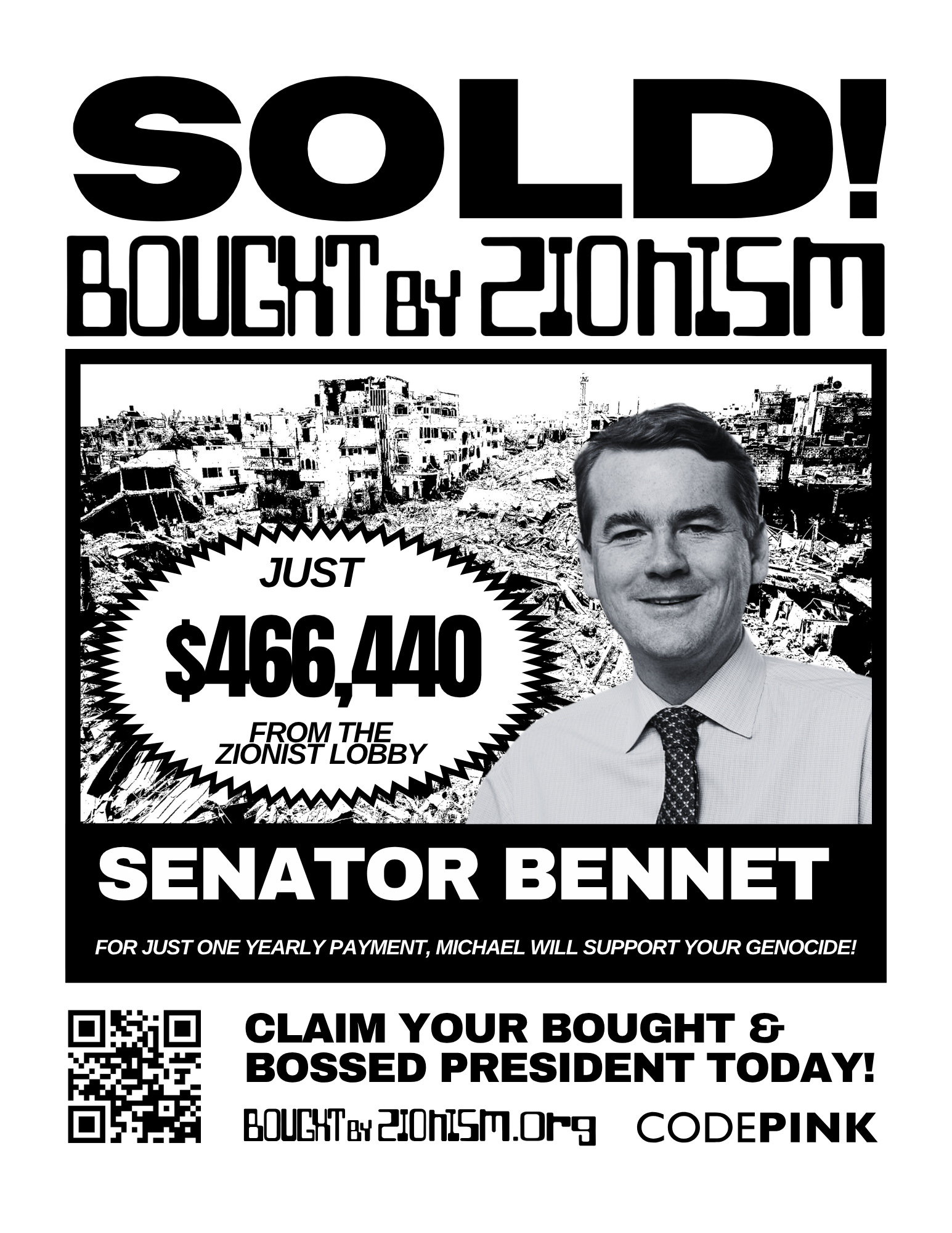 Colorado Senator Michael Bennet is a proud supporter of Israel’s genocidal operation in Gaza, since AIPAC cut the checks to keep him in office. Two months into the Israel’s genocide of Palestine, on November 2023, Senator Bennet released a statement reading, “Even in a world already wracked by violence, the medieval forms of terrorism Hamas inflicted that day were brutal. In the wake of that horrific attack, Israel has no choice other than to defend itself and protect the Israeli people.” Senator Michael Bennet believes Israel had no choice but to murder over 39,000 Palestinians, including more than 15,000 innocent children to “defend themselves.” To make matters worse, Senator Michael Bennet approved to send Israel $3.8 billion in unconditional military aid 5 months later through the Strengthening of Israel-U.S. Alliance Act.