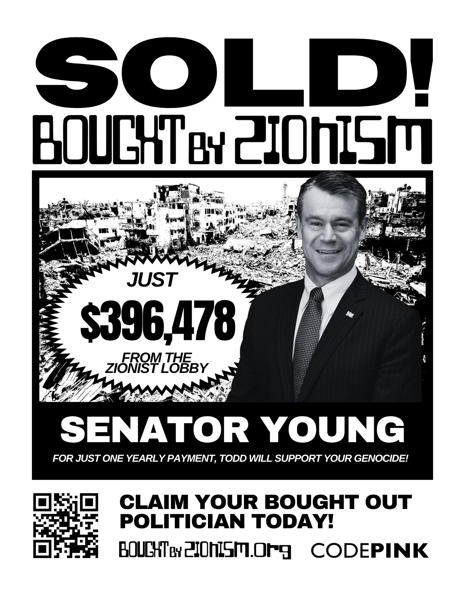 Senator Young’s alignment with AIPAC and his relentless support for Israel’s military actions highlight a disturbing disregard for the lives of Palestinian civilians. His legislative actions and rhetoric amplify the suffering in Gaza and the West Bank, contributing to ongoing land grabs, forced displacement, and the perpetuation of violence. By continuing to advocate for unconditional U.S. support for Israel, Young is complicit in the atrocities being committed, prioritizing the interests of a foreign government and its lobbyists over the human rights of millions of Palestinians stuck in the Gaza strip, a 25-mile long coastal land.